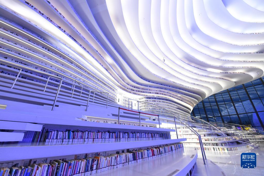 有着“滨海之眼”之称的滨海新区图书馆位于天津滨海文化中心,于2017年10月正式开馆,目前已成为天津滨海新区的文化“新地标”。“滨海之眼”的内里是图书馆中庭,中庭空间形象由“书山”和中间的球体构成。球体是“滨海之眼”的“眼球”,也是一个多功能厅,配置有环绕立体声和数字放映功能;“书山”则由34层阶梯平台构成。