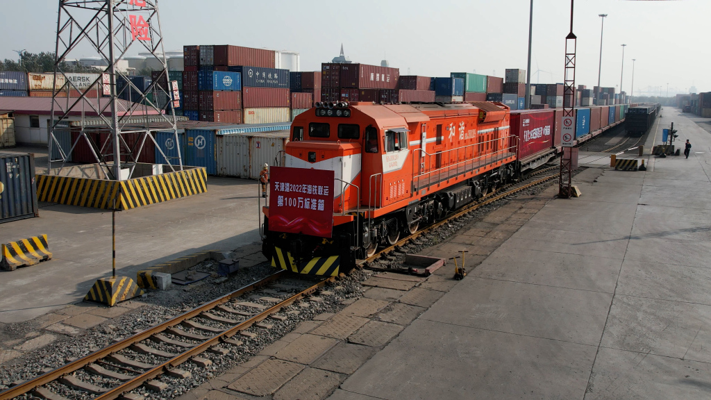 10月25日上午,天津港物流发展公司物捷三堆场里车辆往来穿梭,来自多个国家的集装箱正一个个吊装上即将发往二连浩特的班列。随着最后一箱吊装上车,经过加固、巡检后,班列缓缓驶出,以此为标志天津港集团2022年海铁联运量顺利完成100万标准箱,比2021年提前了64天,同比增长21.1%,全力保障了国内国际产业链、供应链稳定畅通。