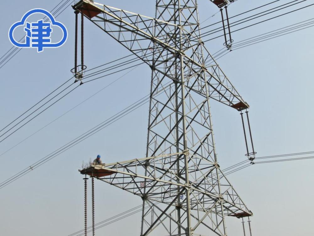 3月28日,国网天津高压公司作业人员在某500千伏输电线路杆塔上安装检查护鸟挡板(张鹏睿摄)