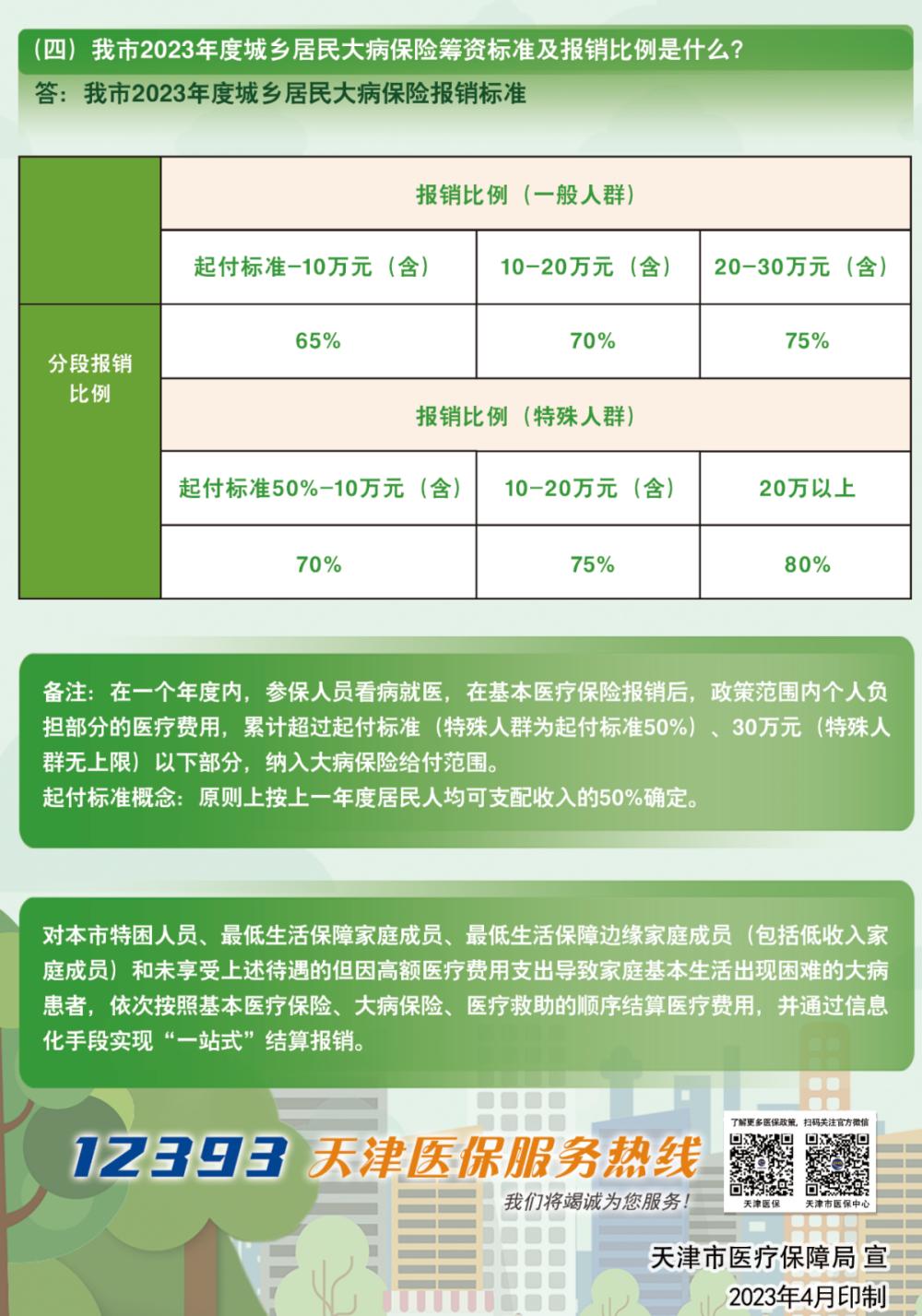 一图读懂!2023年度天津市居民基本医疗保险待遇标准