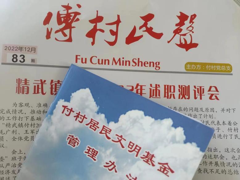 据了解,为加强德治法治建设,加快村居现代化建设,付村制定了居民文明基金管理办法、《付村乡风文明促进会章程》等一系列村规民约。