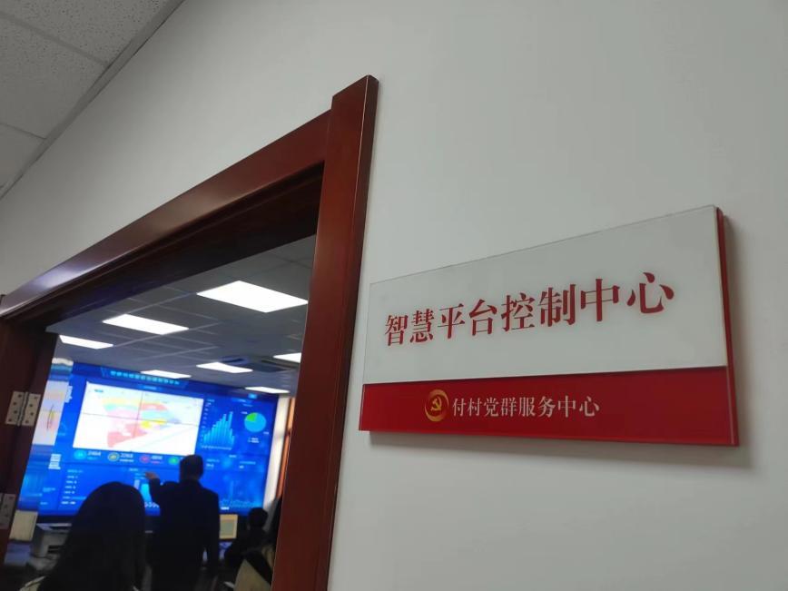 “各位现在看到的就是电脑端的一个界面,屏幕的中间是我们付村的一个平面图,下面展示的是人口组成……”在付村的智慧平台控制中心,工作人员站在一块蓝色屏幕前对记者进行讲解。