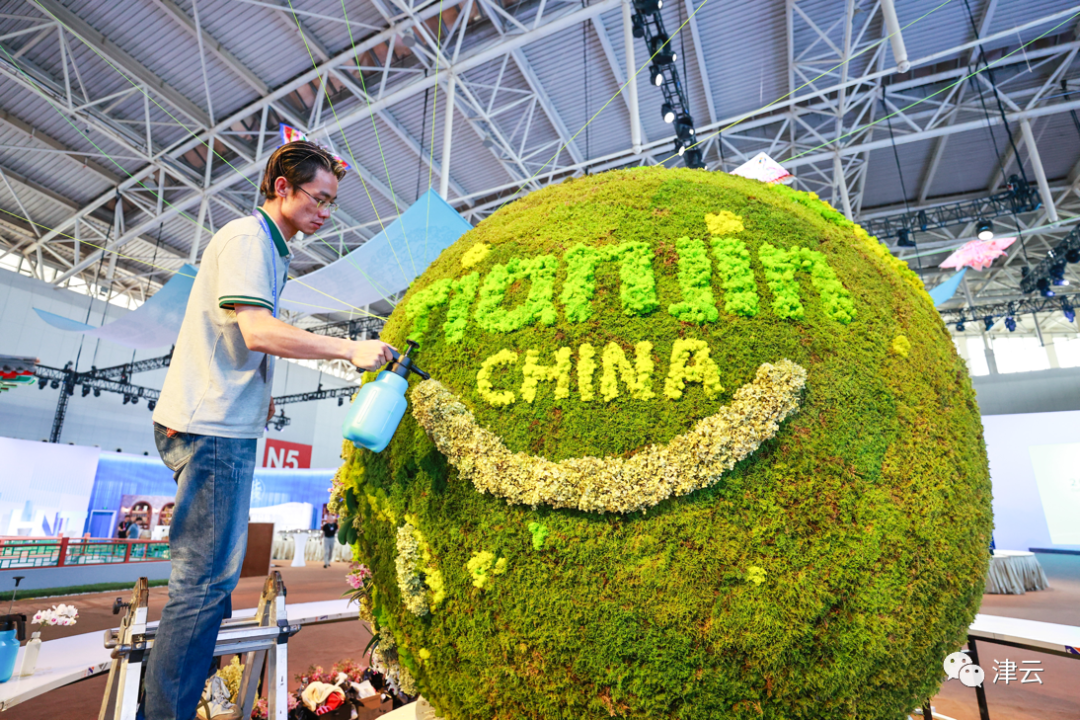 探营中,达沃斯论坛新领军者村现场搭建总负责人、天津市艺术装饰有限公司李暘介绍了新领军者村的搭建情况以及设计亮点创意。“从入场到搭建完成,新领军者村仅用了一个月左右的时间。前期,我们积极与法国设计公司进行对接,在总体设计思路框架下,力求将一些创意设计深化、落地,更好地实现外方整体设计意图。同时,本着生态环保、可持续发展的理念,目前,我们所使用的搭建材料可循环使用率可以达到60%以上。”