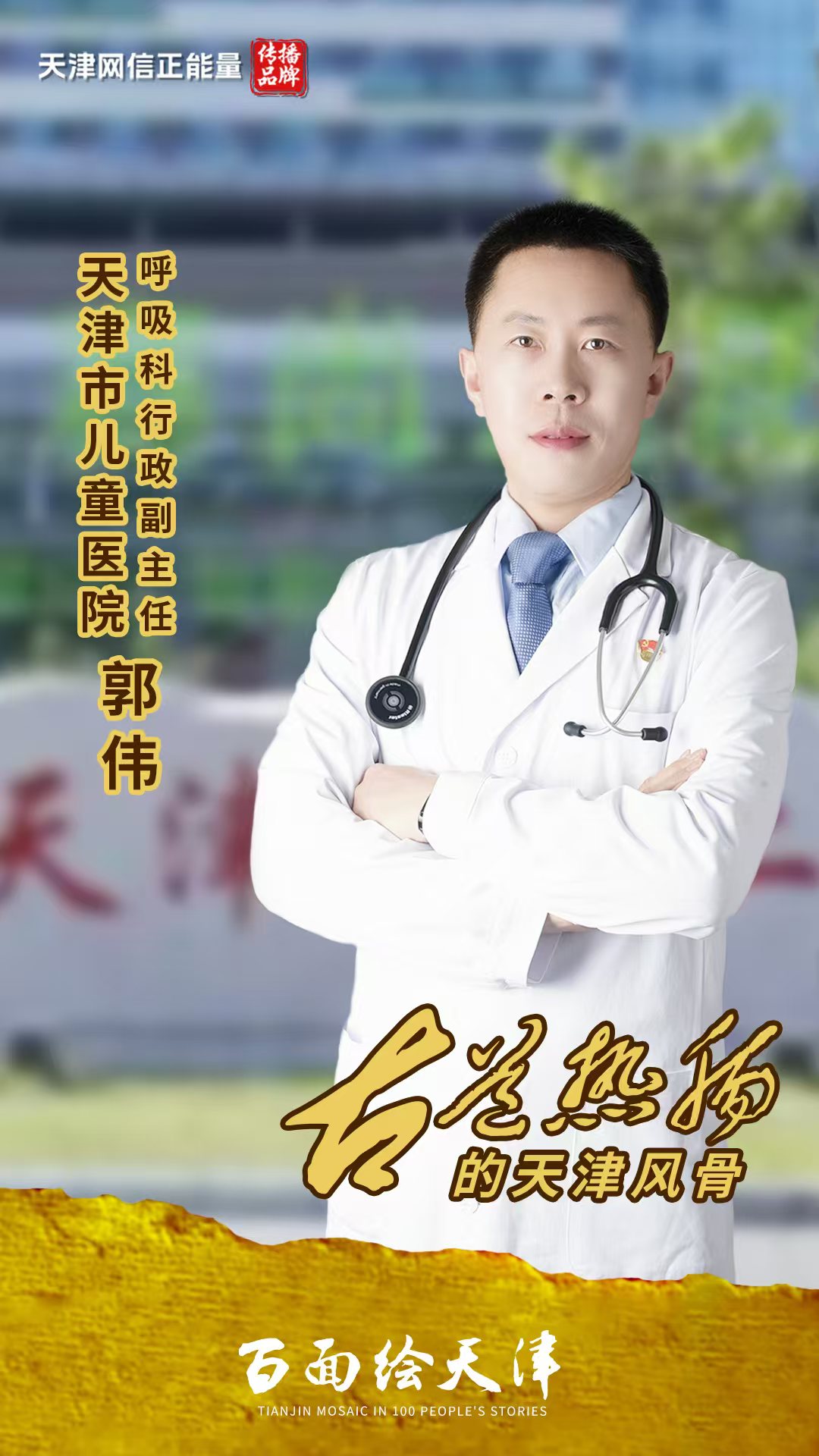 有一种忙碌叫“儿科医生”。儿科,一个被比喻为“哑科”的科室,高强度、诊疗难、配合度低。孩子用哭闹传达不适,家长靠描述病情与医生沟通,医生需要大量临床经验判断病情。在天津市儿童医院有这样一位医生,他温文尔雅,脸上总是洋溢着热情笑容;他行色匆匆,穿梭门诊、住院病房的同时,还承担着参与市级科研项目、培养骨干医生的多重责任;他妙手仁心,从事儿科临床工作19年,诊治患儿数万余人次,他就是呼吸科主任医师、行政副主任郭伟。