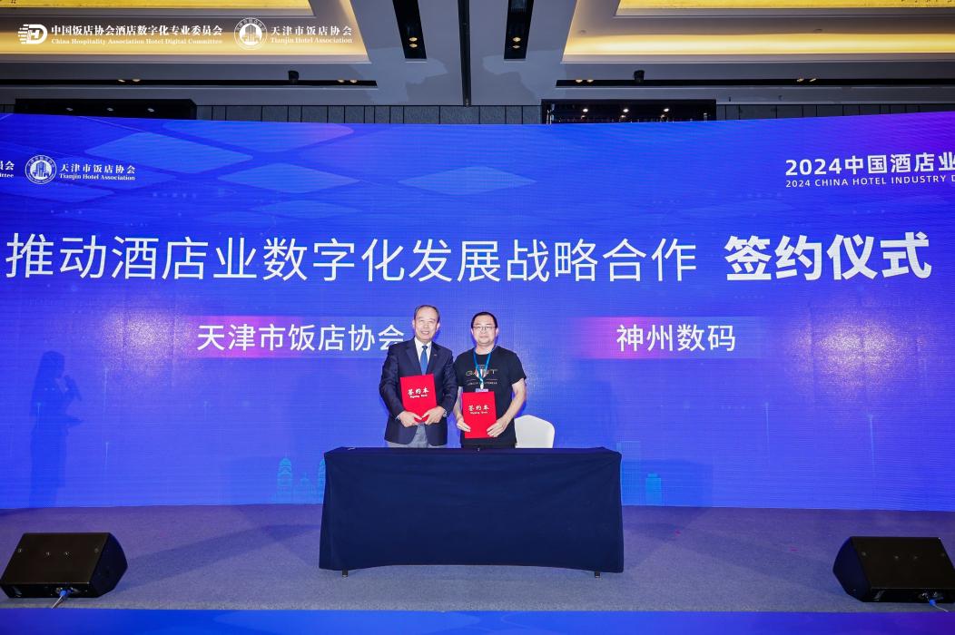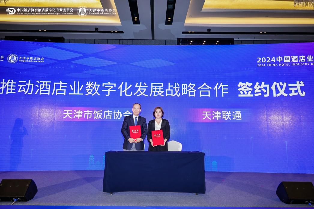 本次峰会还举办了数字化发展战略合作签约仪式,天津市饭店协会分别与天津联通、神州数码签订了战略合作协议,标志着双方将在数字化领域展开深入合作,共同推动酒店行业的数字化发展。签约仪式上,双方代表握手言欢,共同期待未来合作的美好前景。