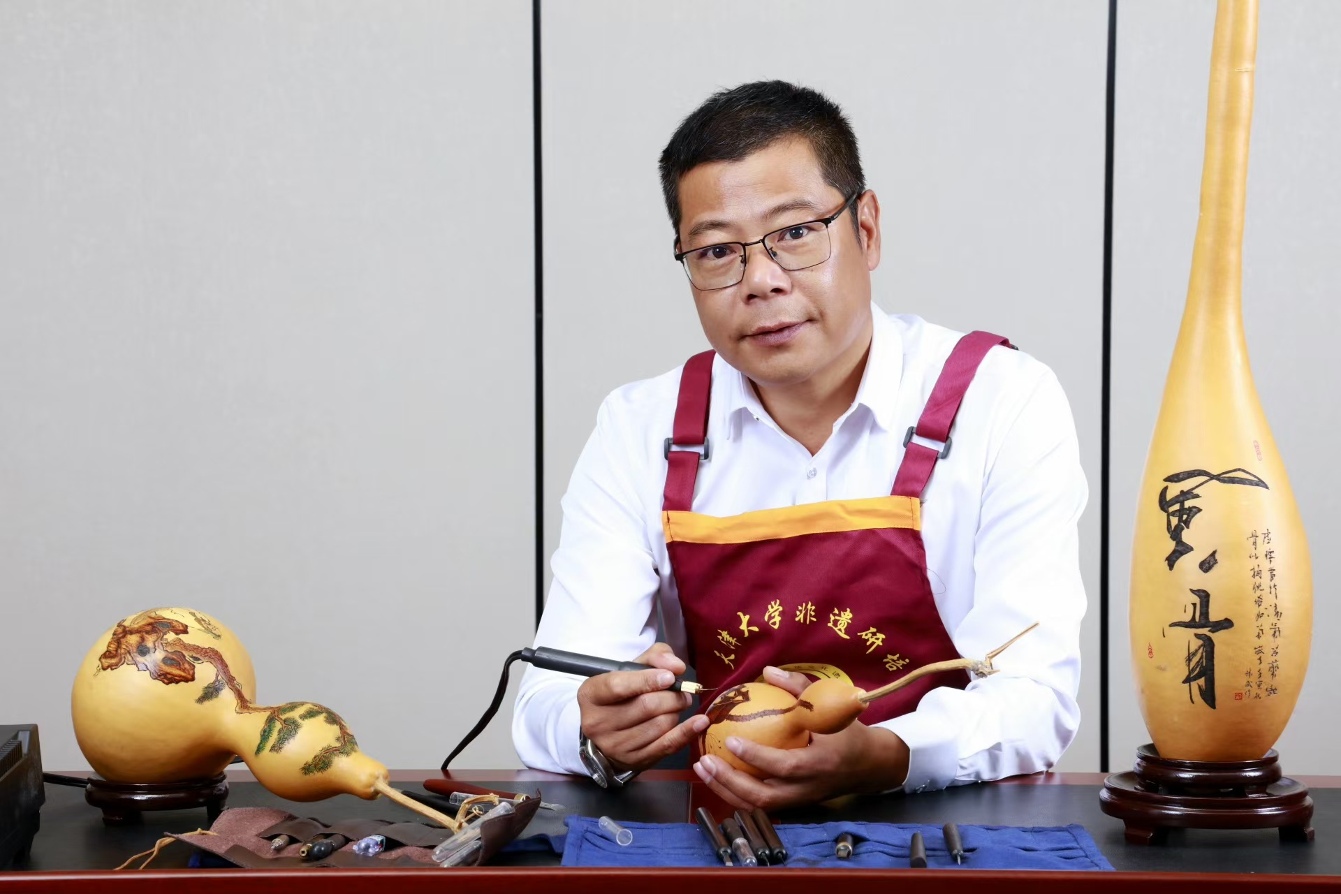 “今年,有一些外国友人来到我们太平镇崔庄村,购买了葫芦茶叶罐、葫芦钥匙坠,作为伴手礼带回他们的国家。我们也希望通过太平镇传统非遗技艺做出的葫芦烙画作品,可以作为中外文化交流的桥梁和纽带。”徐林成表示。