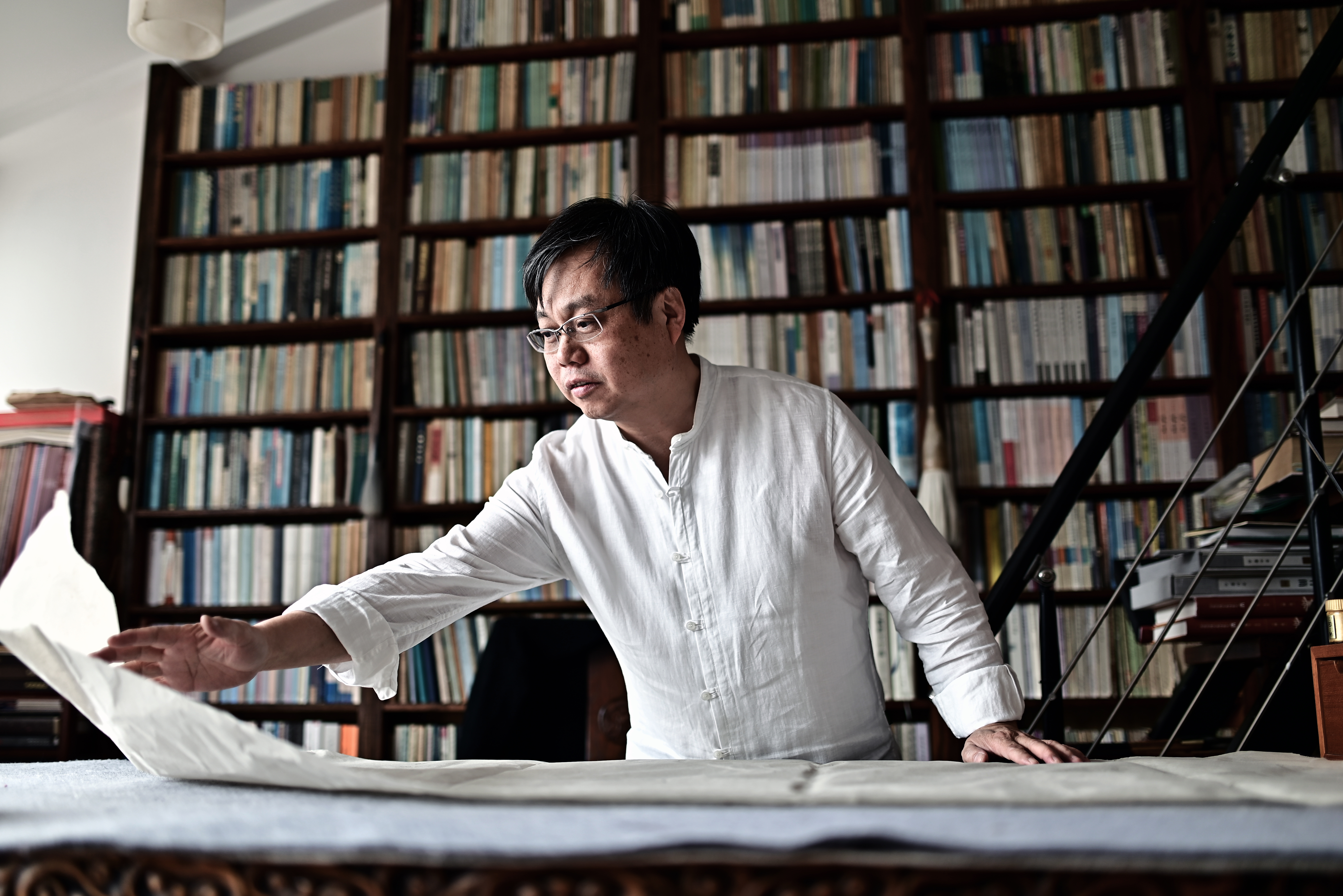 冬日正午,初见天津市书法家协会副主席孟巍时,他正拿着一支缀满红果的树枝,仿佛自然赠予的灵感之笔,将其安置于书房窗边一只古朴花瓶之中。花瓶旁,墨香缭绕。阳光透过窗户洒在纸上待书的空白处,光影交错间,书房中洋溢着诗意与生活的和谐之美。
