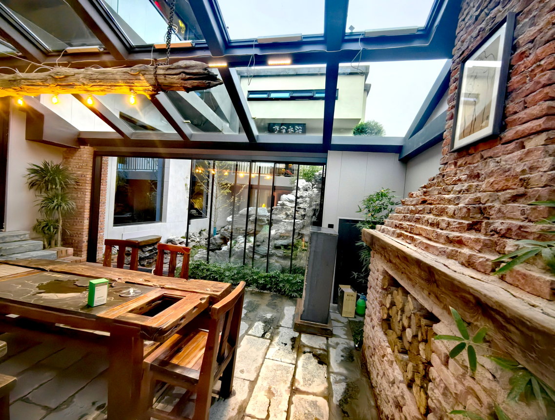 从地铁双桥河站出发,不足100米便可看到写着“沽水·孙庄民宿”的道路招牌。沿着入村道路一直走,各式风格的建筑让人眼前一亮,咖啡厅、音乐厅、轰趴馆、各种风格的民宿……古朴典雅的木质结构,现代简约的玻璃幕墙,各类涂鸦墙,村景融合,置身其中,让人与乡愁初心久别重逢,与古韵流水淙敞心扉,与现代时尚交换灵感……这个十一期间,先期投入试运营的1、2、6、7号民宿作为首批亮相的精品住所迎接八方来客,市民及游客于咖啡厅、书屋中品味城市慢生活;在音乐吧、轰趴馆里享受旋律脉动;从水清岸绿、河畅景美间找寻对海河的眷恋。