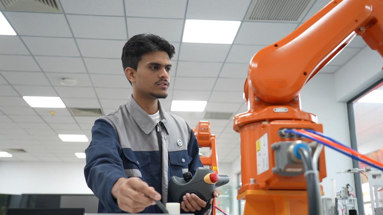 两年前,怀揣着对顶尖技术的向往,乌马尔循着鲁班工坊项目的指引,跨越千山万水来到天津现代职业技术学院。此前,他在巴基斯坦的鲁班工坊已初涉电气自动化技术,正是那半个月的启蒙,点燃了他心中“到技术源头去”的渴望。