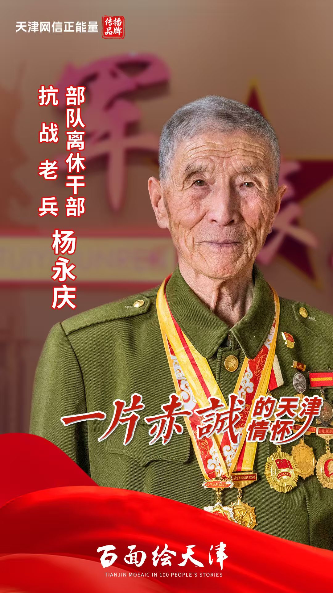 - 百面绘天津 | 杨永庆:戎马一生筑信仰 红色家风传津门经历过枪林弹雨、烽火硝烟的战争岁月,杨永庆更加珍惜今天来之不易的幸福生活。离休后,他不顾年迈,坚持参加宣传党的创新理论和关心下一代的工作。